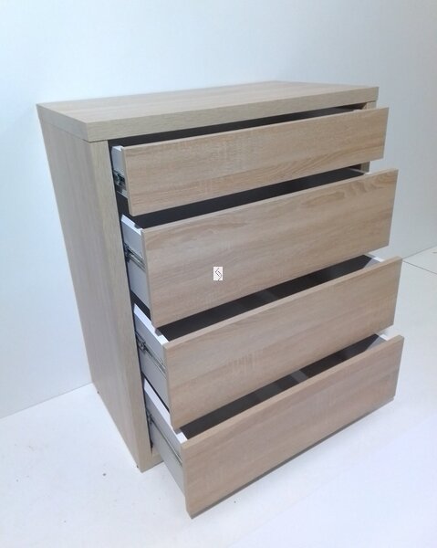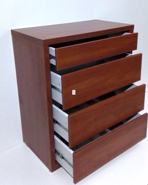 - классическое исполнение – 4 продольных выдвижных ящика, расположенных друг под другом. Ящики разной глубины, один верхний выдвижной ящик имеет глубину 95 мм., три нижних глубину 173 мм.