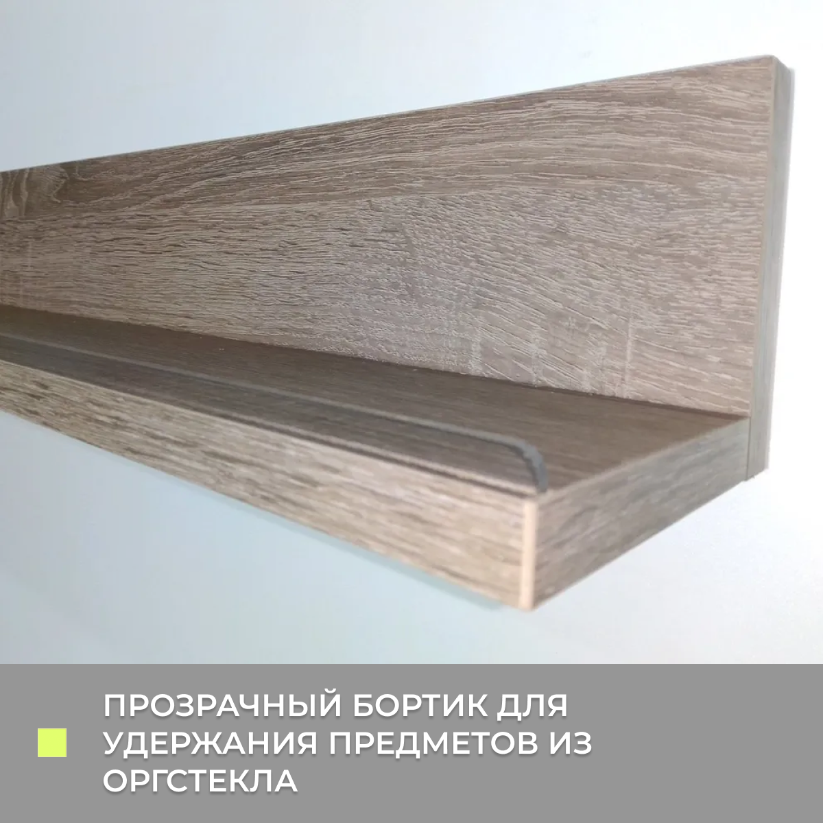 Имеет внешний бортик для удержания предметов, предотвратит падение с полки, задает особый стиль полке.