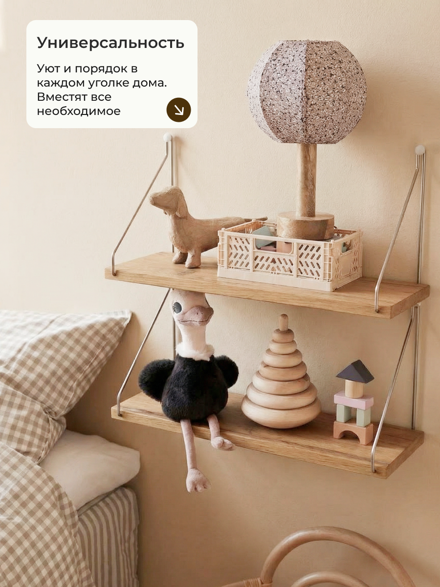 Настенная полка «Анрат пн 2.48к» — практичное и стильное решение для хранения и декора. Модель органично впишется в интерьер гостиной, спальни, прихожей или кабинета. Лаконичный дизайн делает полку универсальным элементом обстановки: она подойдёт как для размещения книг и сувениров, так и для организации пространства в небольших помещениях.