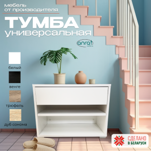 Изделие изготовлено с открытой полкой, имеется выдвижной ящик для хранения мелких вещей и аксессуаров. Для хранения предметов предусмотрено две ниши. Нижняя ниша высотой 16 см, вторая подойдет для домашней, летней обуви высотой 10 см. При необходимости полку можно убрать и получить единую нишу высотой 26 см.