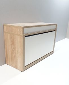 Тумба для обуви Анрат «Элана 1к.80» — Тумба для обуви с одной откидной секцией и нишей сверху — это компактная и функциональная мебель для прихожей, которая сочетает хранение обуви и организацию пространства для мелких предметов. Такая модель обычно включает несколько конструктивных элементов: Откидная секция для обуви — основное отделение, доступ к которому открывается путём откидывания фасада. Это позволяет удобно размещать и доставать обувь. Ниша сверху —закрытое отделение, расположенное над откидной секцией. Здесь можно хранить повседневные предметы, аксессуары, головные уборы, перчатки или другие мелочи.
