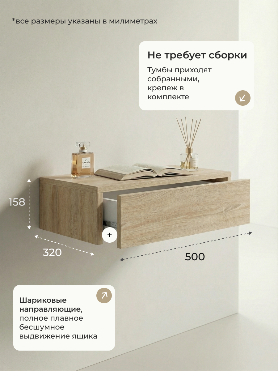 ШК 500 - удобный и компактный предмет мебели для дома и квартиры. Служит прекрасным дополнением для интерьера. Предназначен для хранения вещей, аксессуаров в шуфляде (направляющие шариковые), а также предметы можно расположить на поверхности. Крепление производится к стене через задний щит на шуруп 4*50. Нагрузка на изделие 3 кг. Поставляется в собранном виде. Крепеж прилагается. Изделие может использоваться по желанию покупателя.